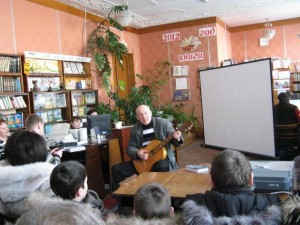 У цэнтральнай районнай бібліятэцы імя А.Астрэйкі падчас прэзентацыі кнігі С.А.Трахімёнка: «Чаша Петри, или Русская цивилизация. Генезис и проблемы выживания».