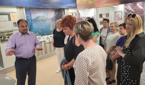 В ходе профессионального визита экскурсию с гостями по краеведческому музею, достопримечательностям города провел сотрудник музея Андрей Летченя.