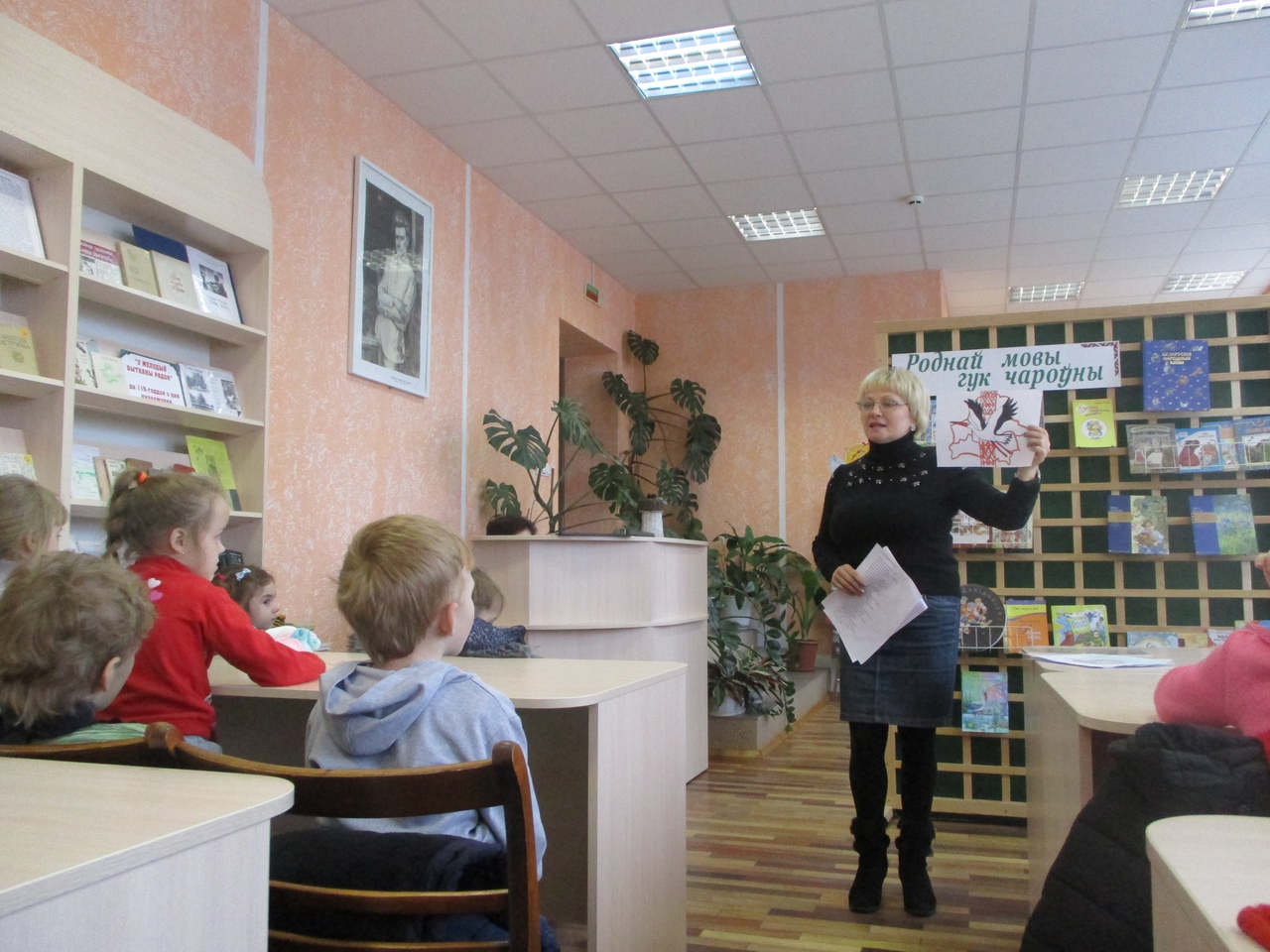 Бібліяняня для малышоў дзіцячага садка № 6 » Роднай мовы гук чароўны» прайшла ў Капыльскай дзіцячай бібліятэцы. Дзеці прадоўжылі знаёмства з роднай мовай, пачатае ў садку. А прыкладам сталі, безумоўна, кнігі. Разам ўспаміналі беларускія народныя казкі, разгадвалі загадкі, вучылі беларускія словы.