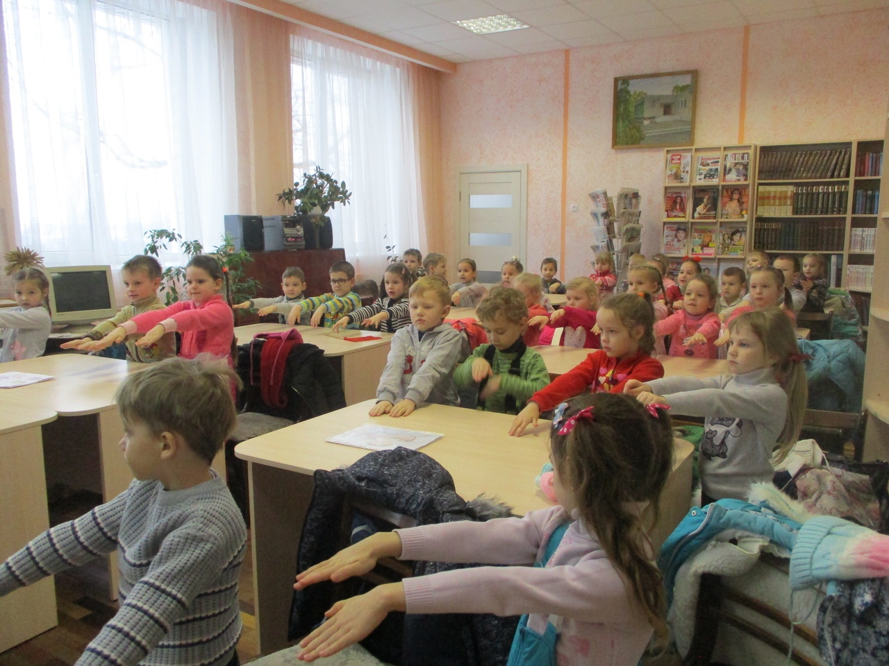 Дзеці падаравалі бібліятэцы свае малюнкі, створаныя па беларускіх народных казках, прыказках і прымаўках.