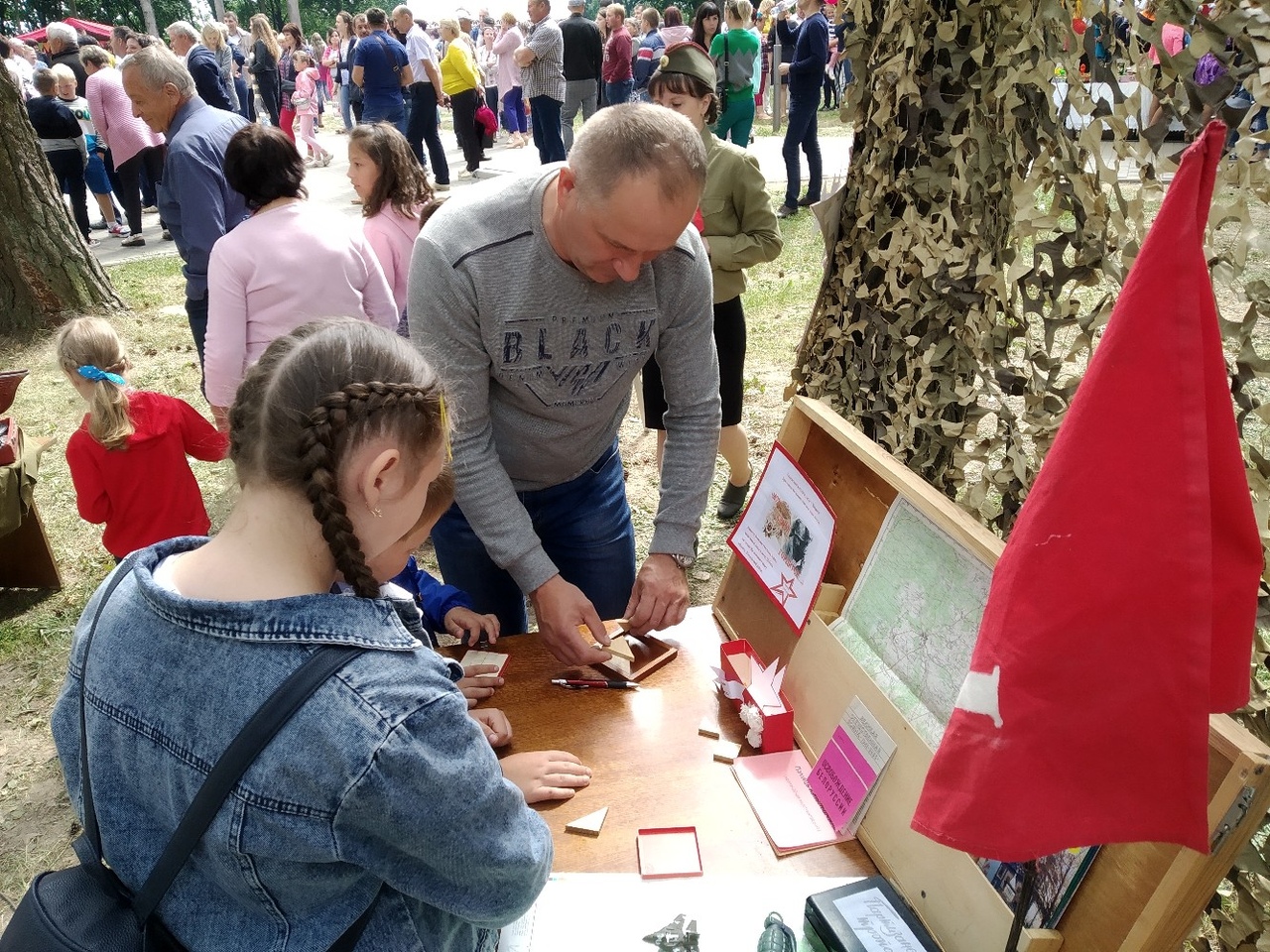Копыльская районная центральная библиотека им. А. Астрейко на праздничном торжестве оформила фотозону посвящённую75-летию освобождения Беларуси. Партизанская поляна отражала партизанский быт солдат, когда бойцы разбивали лагерь для отдыха или ночлега в лесу. С удовольствием фотографировались у костра, играли, пили чай …