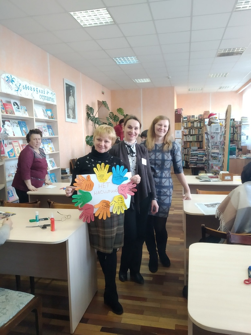15 января в Копыльской районной центральной библиотеке им. А. Астрейко прошла встреча с заведующей отделения социальной адаптации и реабилитации ТЦСОНа Светланай Анатольевной Путейко с целью профилактики домашнего насилия и распространения информации нуждающимся в помощи. С увлечением приняли участие в создании коллективного коллажа на тему «Нет насилию».