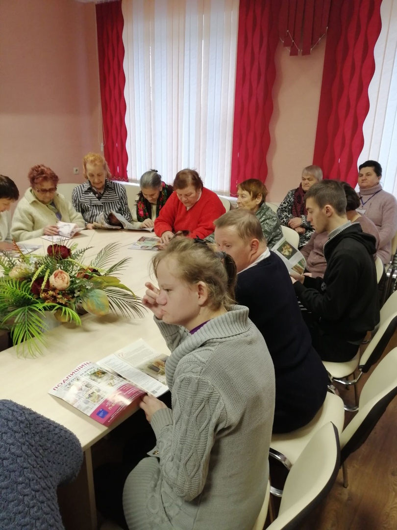 У рамках праекта “Кніжны свет” супрацоўнікі аддзел абслугоўвання Капыльскай раённай цэнтральнай бібліятэкі імя А.Астрэйкі правялі літаратурнае рэвю “Паспяховыя пісьменнікі сучаснай Беларусі” для наведвальнікаў тэрытарыяльнага цэнтру сацыяльнага абслугоўвання насельніцтва.