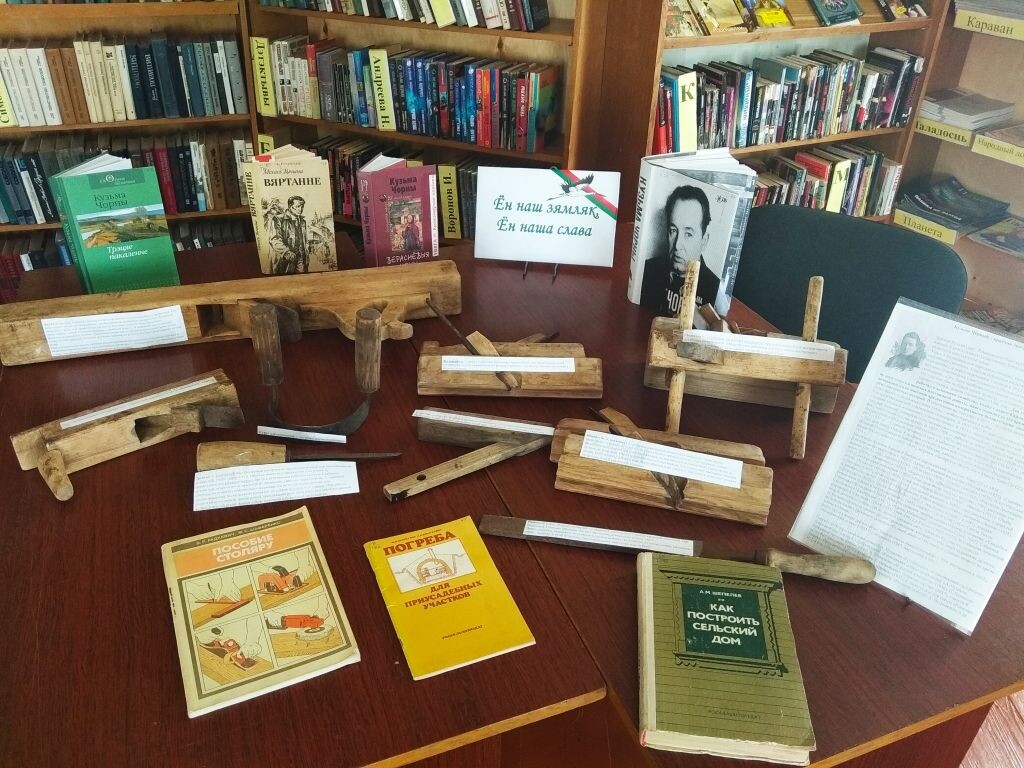 Сучасны чалавек малазнаёмы з такімі прыладамі працы, па-гэтаму кожны інструмент падпісаны і тлумачыцца яго прызначэнне. Таксама на выставе прадстаўлены творы “беларускага Дастаеўскага” і кнігі па будаўніцтву.