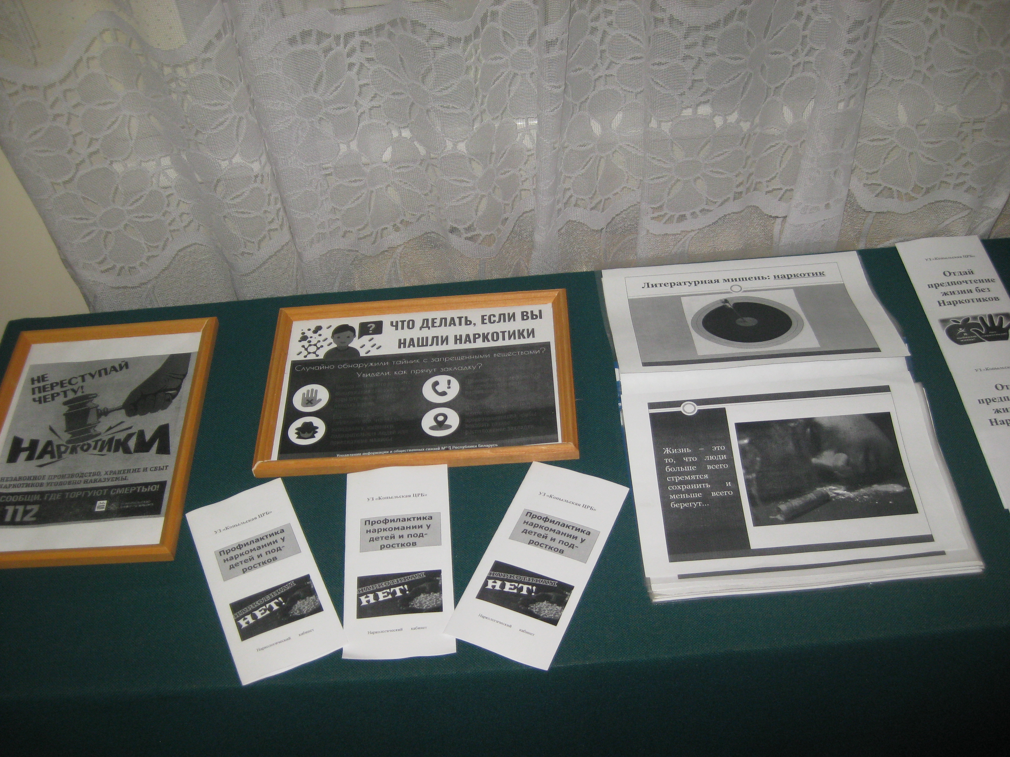 Проведены профилактические мероприятия: беседа «Мы за мир без наркотиков» прошла в Братковской библиотеке-клубе, Мажская сельская библиотека с учащимися Копыльского колледжа провела открытый диалог «Территория мрака. «Скажем наркотикам — НЕТ» , тематический флешмоб “Мы выбираем жизнь без наркотиков” прошёл в Слободокучинской и Конюховской , конкурс рисунков «Дети против наркотиков» провели в Жилиховской сельской библиотеке и др