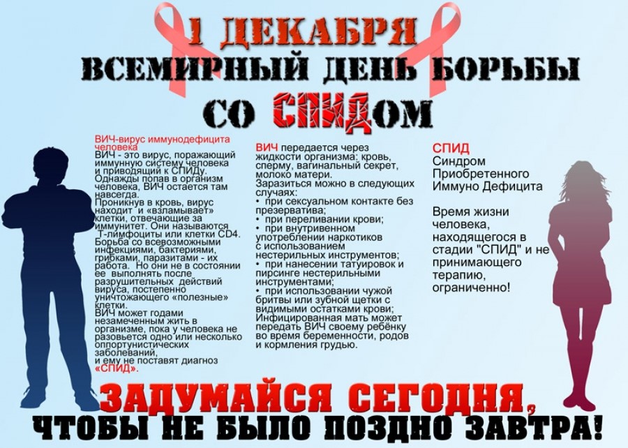 Ежегодно, в соответствии с решением Всемирной организации здравоохранения (ВОЗ) и Генеральной Ассамблеи Организации Объединенных Наций (ООН), принятым в декабре 1988 года – 1 декабря отмечается Всемирный день борьбы со СПИДом. Всемирный день борьбы со СПИДом отмечен своим символом – красной лентой, которая обозначает поддержку, сострадание и надежды на будущее без СПИДа.
