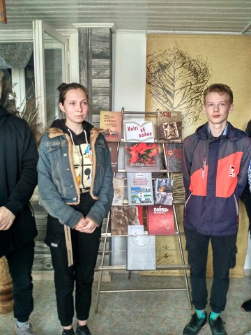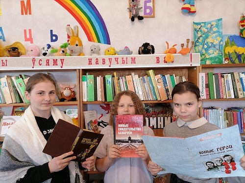 Девочки из 6 класса, наши активные читательницы. Лобан Женя взяла книгу «Ніколі не забудзем», решила прочитать воспоминания детей, которым пришлось пережить все ужасы войны.